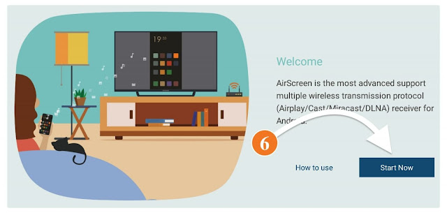 Step 6: When you launch the AirScreen for the first time you will see the Welcome Screen so from here select Start Now.