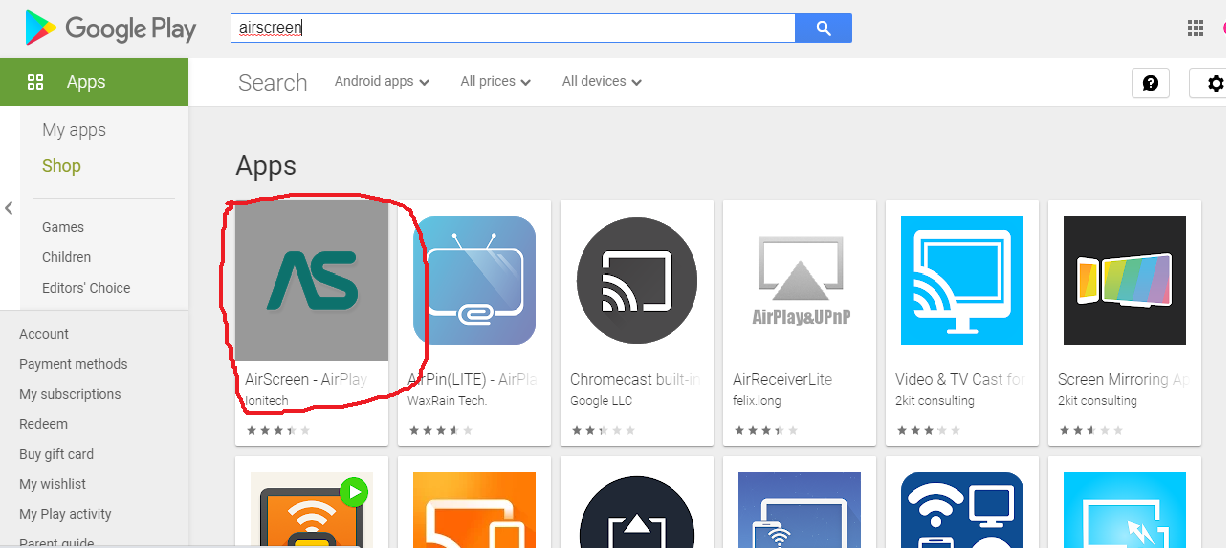 Step 3: After this, you need to click on the first app with the AirScreen title or check the below screenshot.